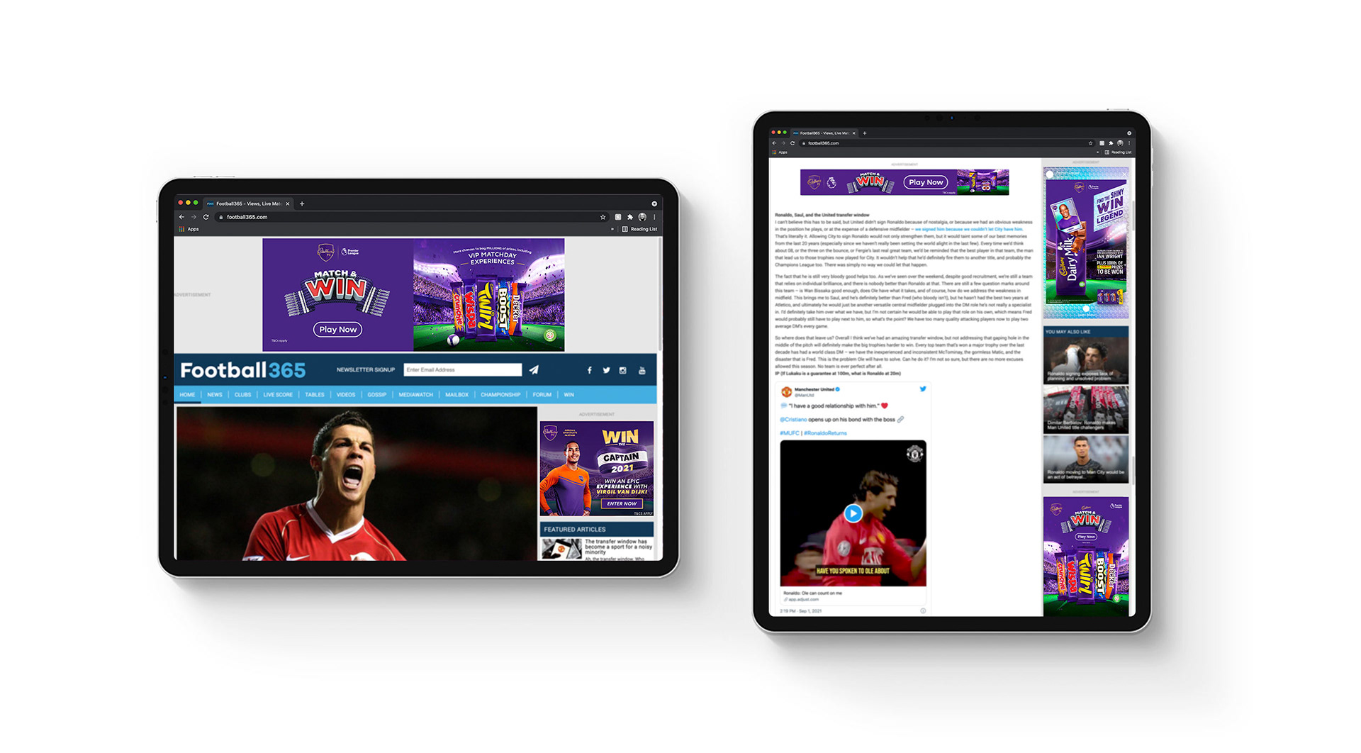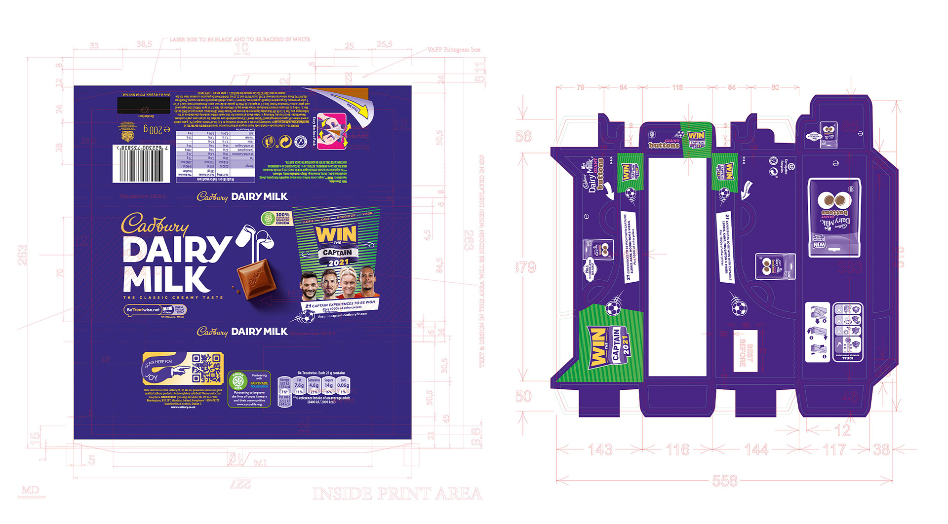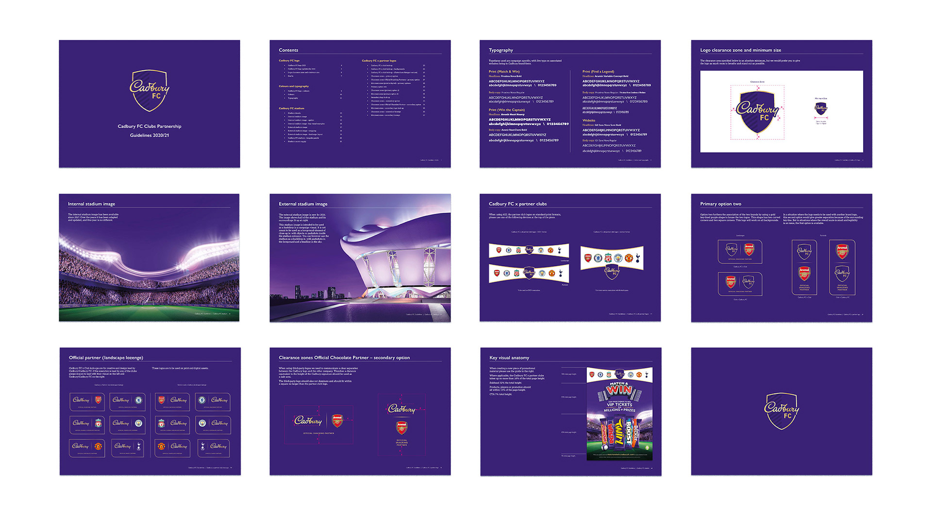 Over the season we created various touchpoints for print, digital and FMCG shopping stores. Logos, key visuals and brand guidelines incorporating Cadbury FC and the top 6 british football clubs, creating a one stop coherent set of guidelines for Cadbury and their partners. Packaging, bar wrappers and free stand display units were also designed and created for the many promotions Cadbury ran.